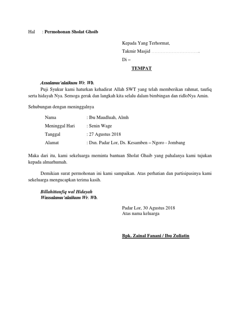 Contoh surat ghoib Surat Permohonan Sholat Ghoib